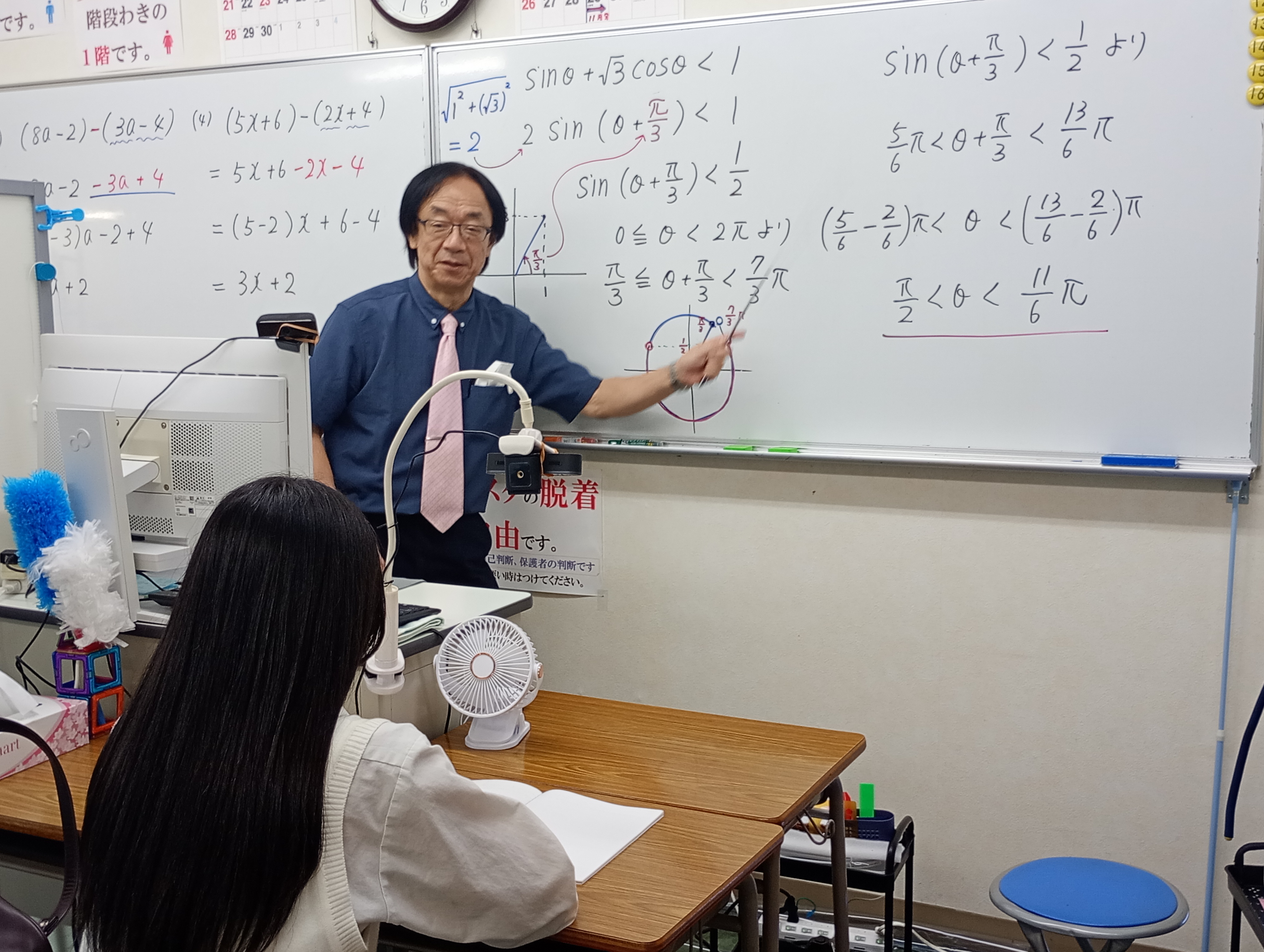 - 定員2名の個別指導です。解説は個別にホワイトボードを使って行います。