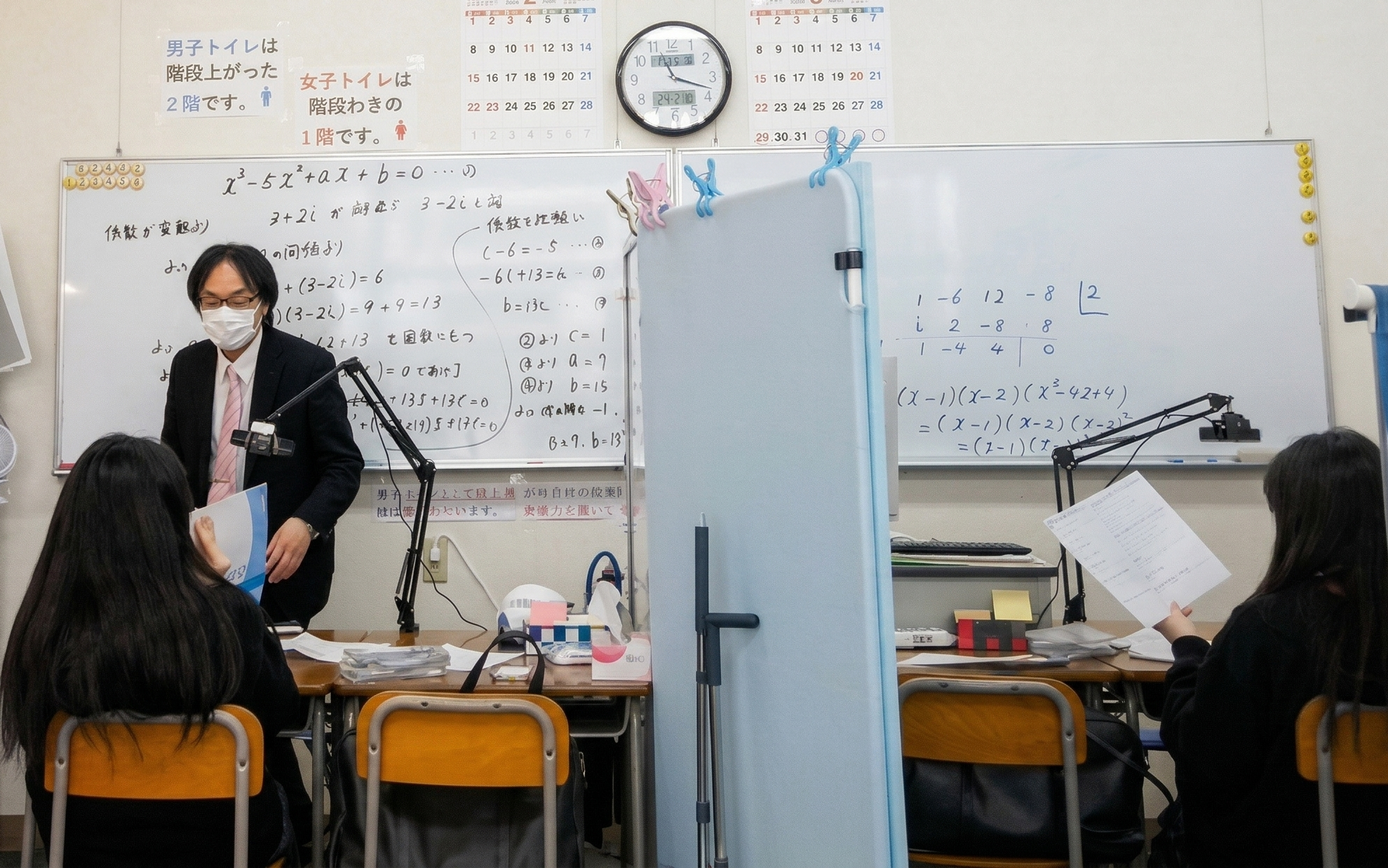 - 定員2名の個別指導です。解説は個別にホワイトボードを使って行います。